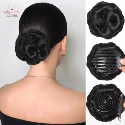 Claw Clip Curly Hair Bun Extension – Natural Black